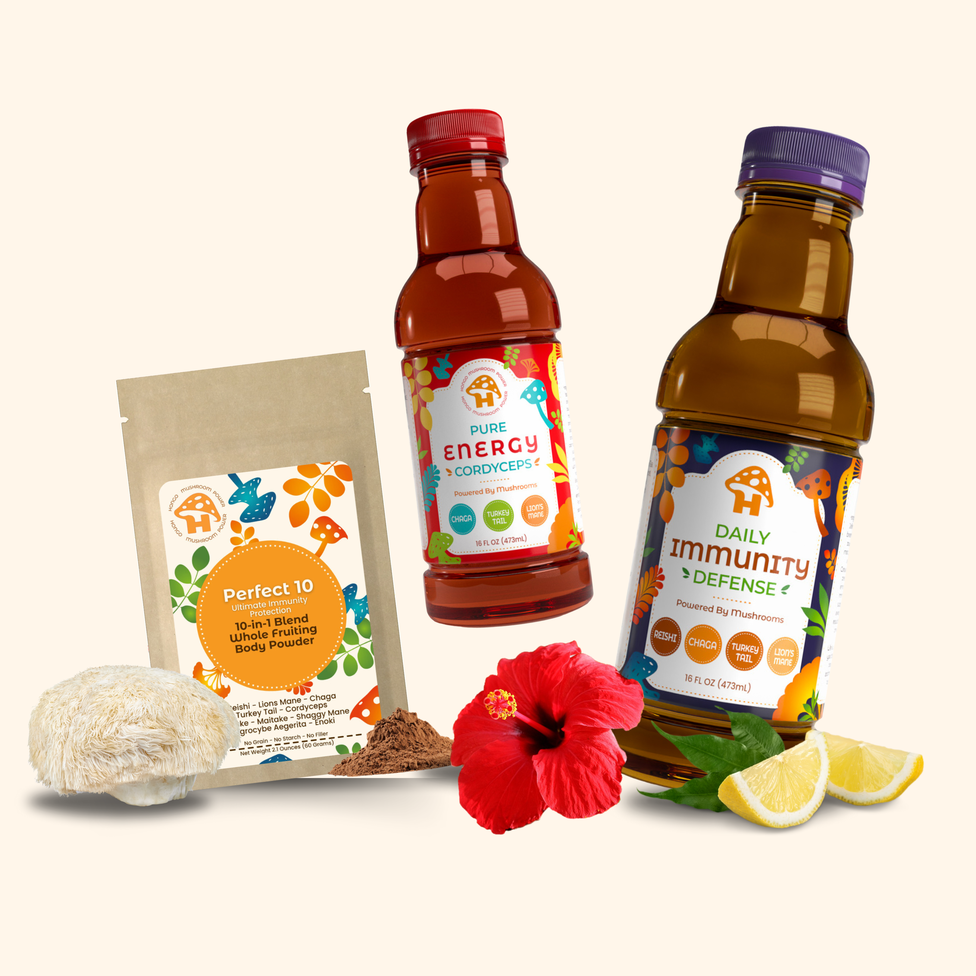 Hongo Daily Immunity Defense - Reishi, Lion's Mane, Turkey Tail, Chaga - 5600mg -Ready to Drink Mushroom Herbal Beverage